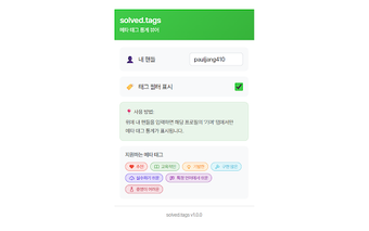Solved.tags är ett gratis tillägg för Chrome som erbjuder användare en översikt över metataggar relaterade till deras bidrag på solved.ac. Genom att visa statistik för sju olika metataggar ger det användarna möjlighet att se hur många bidrag de har gjort inom varje kategori. Detta tillägg är särskilt användbart för dem som aktivt deltar i problemlösning och vill hålla koll på sina insatser.